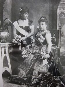 リリウオカラニ女王はカラカウア王の妹であるため、カピオラニ王妃にとっては義理の妹。